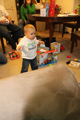 I had lots of fun opening my birthday presents. I got some cool alphabet blocks, a cd (I love music), Some Alphabet books, A "Twas the Night Before Christmas" bear and a birth certificate holder. My Grandpa Anderson also gave me my first taste of cake, I liked it a lot!