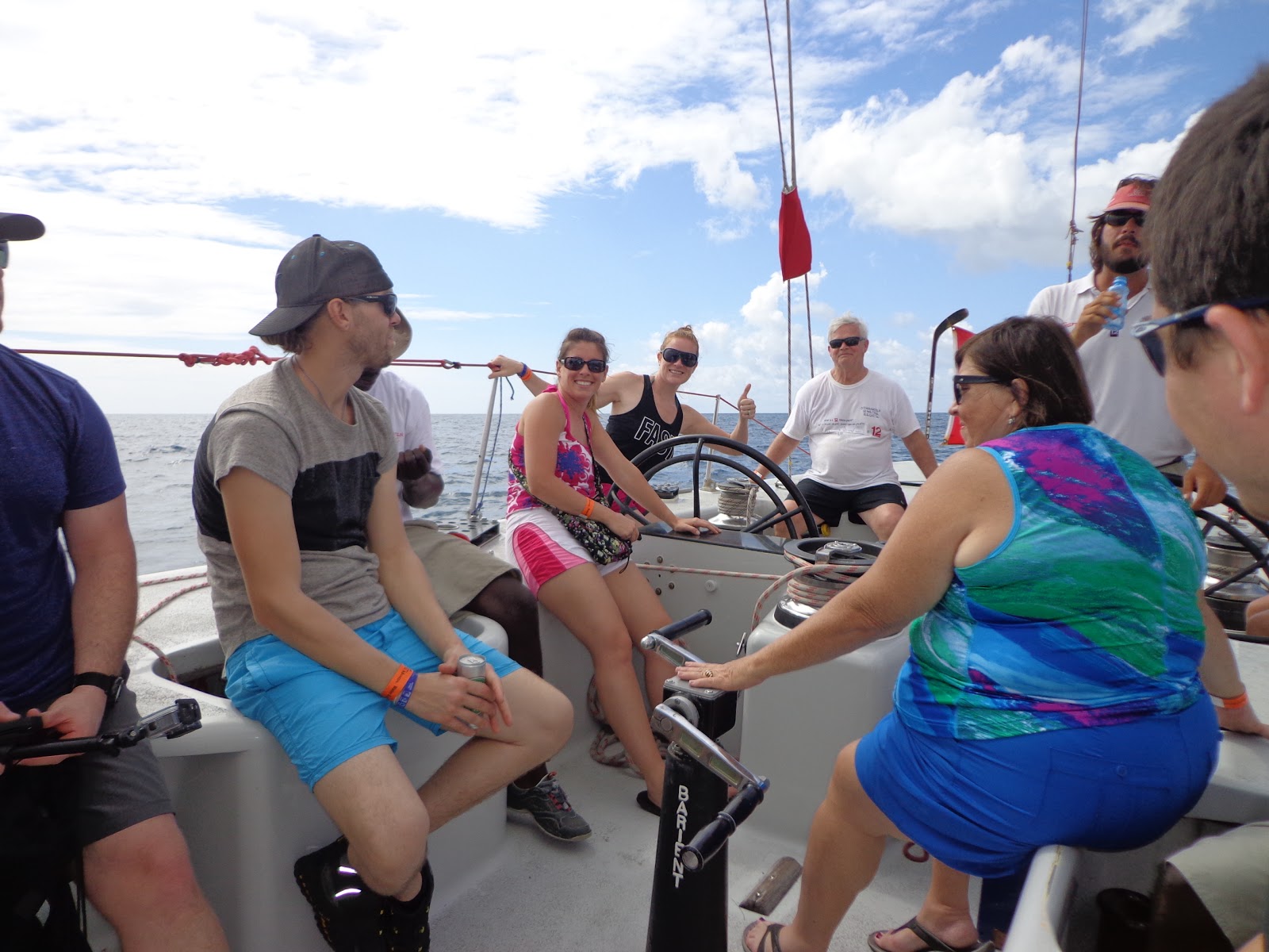 | After the race, we lost by about 4 feet. We all had different jobs to do, I was a wench, Katie was a sheet trimmer, Tyler and David were grinders. |